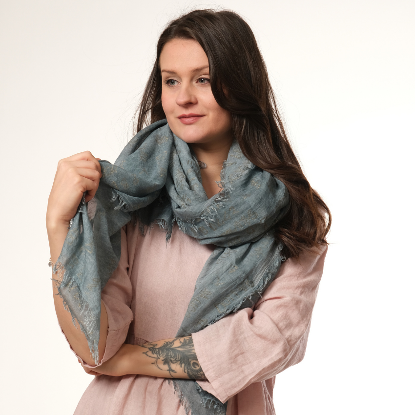 Pehmeä modaalihuivi kultaisilla kirjaimilla  –  säihkettä arkeen