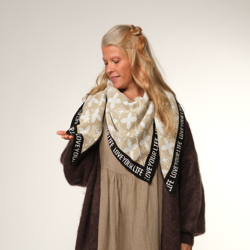 Tämä kolmionmuotoinen huivi on pehmeä, kevyt ja näyttävä asuste, joka viimeistelee asukokonaisuutesi helposti. Materiaalin 50 % puuvillaa ja 50 % akryyliä yhdistelmä tekee siitä miellyttävän ihoa vasten sekä helppohoitoisen. Huivin muoto mahdollistaa monipuoliset sitomistavat – voit kietaista sen rennosti kaulalle, asettaa olkapäille lämmittämään tai solmia tyylikkäästi edustalle. Näyttävä, mutta käytännöllinen huivi tuo asuusi ripauksen huolettoman eleganttia ilmettä.