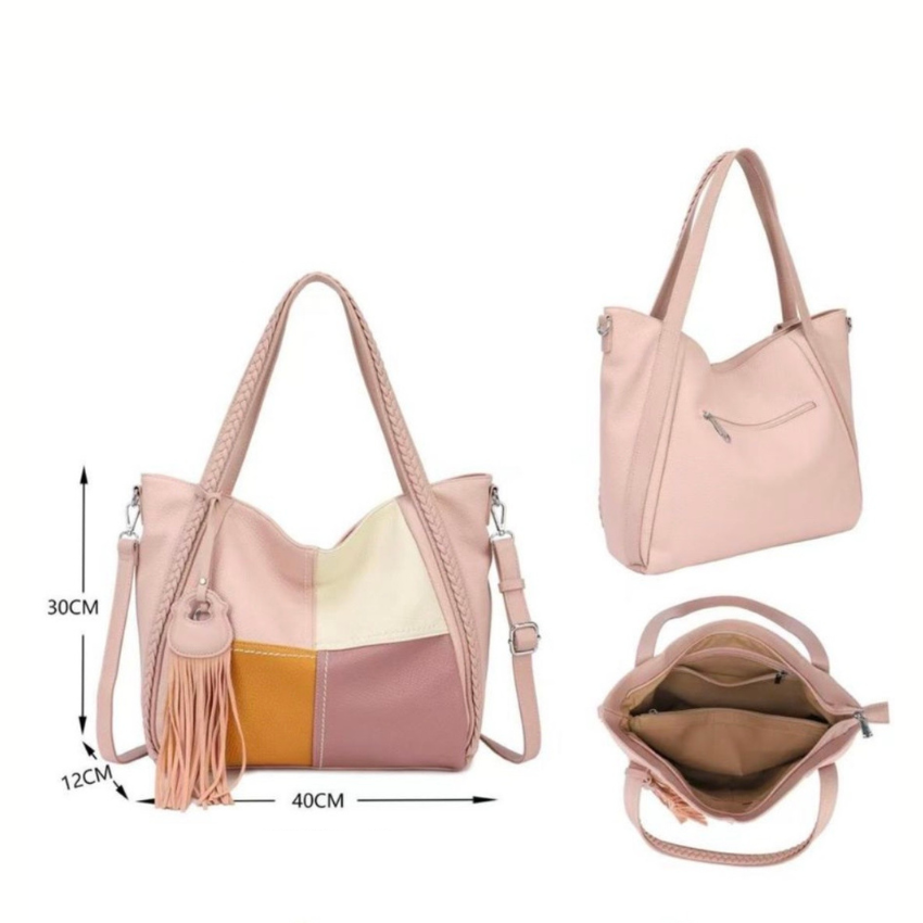 Tämä raikkaan keväinen laukku hurmaa kauniilla värimaailmallaan – pehmeä roosan sävy toimii pohjana, jota piristävät valkoiset ja keltaiset tehosteet. Iloinen mutta harmoninen yhdistelmä tekee laukusta täydellisen kumppanin kevään ja kesän menoihin.